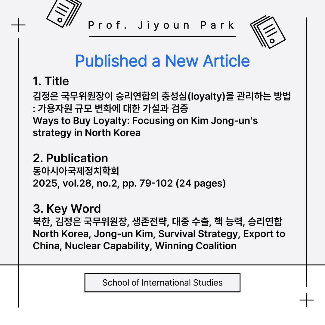 Prof. Jiyoun Park, <Ways to Buy Loyalty: Focusing on Kim Jong-un’s strategy in North Korea>